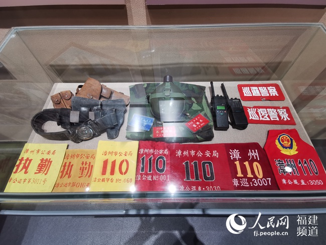 “漳州110”佩戴過(guò)的袖標(biāo)和使用過(guò)的對(duì)講機(jī)等設(shè)備。人民網(wǎng) 蘇海森攝