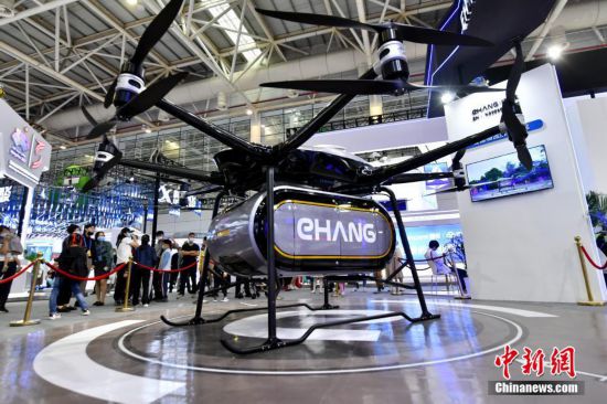 4月26日,福建福州,觀眾在第四屆數(shù)字中國建設(shè)成果展覽會上參觀載貨無人機(jī)。 中新社記者 呂明 攝