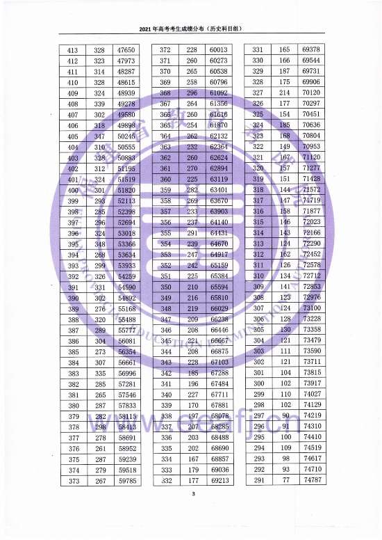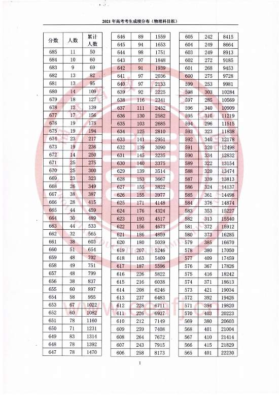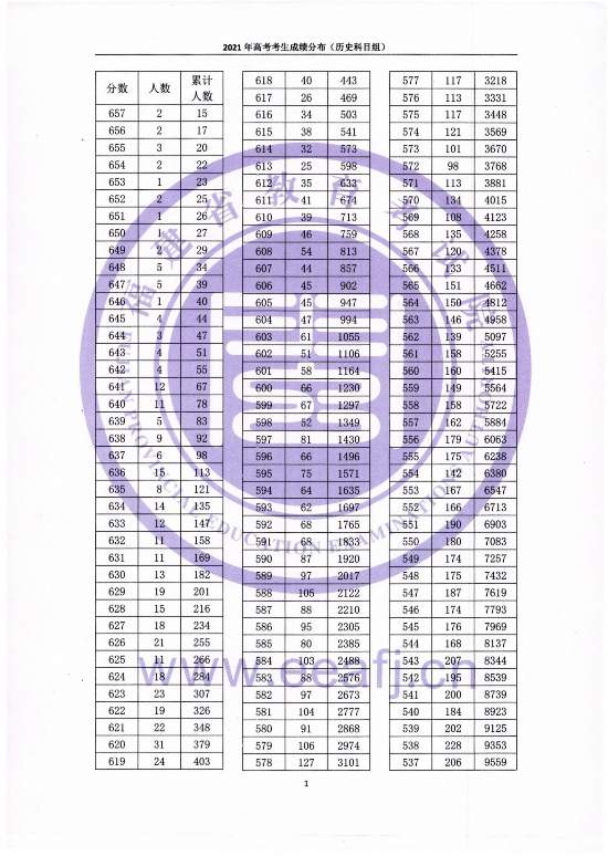 6月27日,福建省教育考試院公布2021年福建高考成績(jī)“一分一段”統(tǒng)計(jì)表。高考一分一段表是考試院官方公布的每一分?jǐn)?shù)段的高考考生分布情況統(tǒng)計(jì)表。它以1分為單位,統(tǒng)計(jì)福建高考所有的考生成績(jī)?cè)谠摲謹(jǐn)?shù)段的考生人數(shù)和累計(jì)人數(shù)。 福建一分一段表是將全省同類別考生的分?jǐn)?shù)從高到低排列,再按一分一段統(tǒng)計(jì)本段人數(shù);從本段往上,一直到最高分段的所有人數(shù)相加,就是累計(jì)人數(shù)。