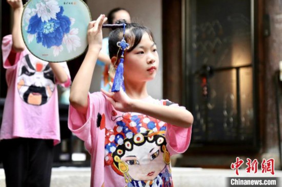 圖為福州麥頂小學(xué)閩劇社團(tuán)小演員表演閩劇!×嘱╂ 攝