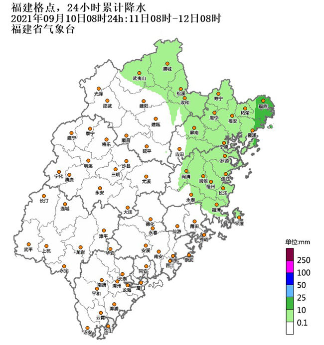 11日8時(shí)—12日8時(shí)降雨落區(qū)預(yù)報(bào)圖。福建省氣象臺(tái)供圖
