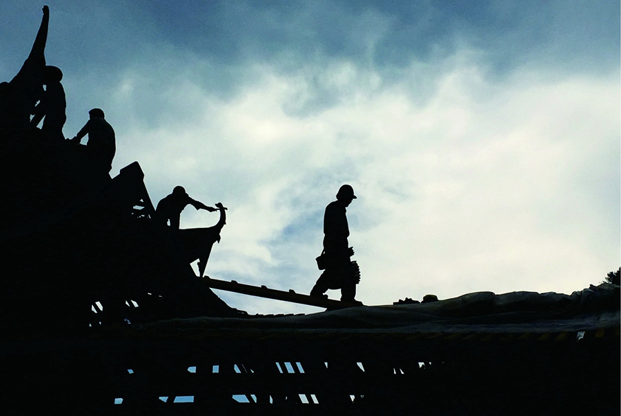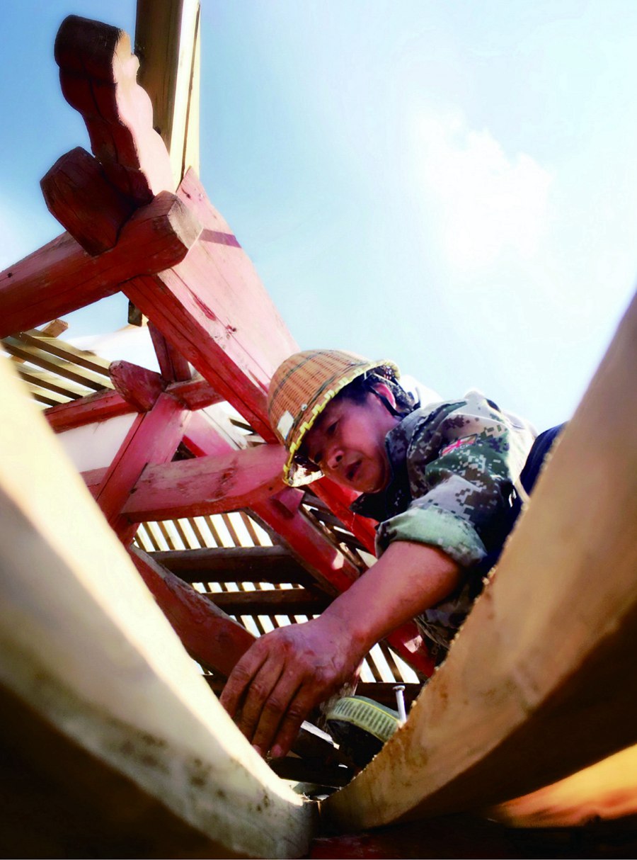搭屋架。龔健攝