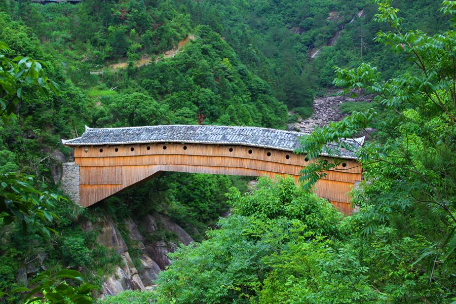 木拱廊橋,木構(gòu)建拱,橋上蓋頂為廊,是中國傳統(tǒng)木構(gòu)橋中技術(shù)含量最高的一類結(jié)構(gòu)形式。我國現(xiàn)存木拱廊橋大多集中在福建東北、浙江西南的邊界一帶。
