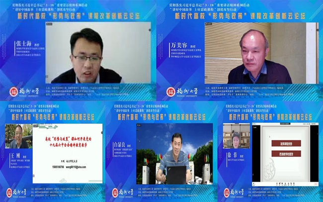 在“主旨報告”環(huán)節(jié),教育部高校思政課總教指委主任委員、“形勢與政策”和“當(dāng)代世界經(jīng)濟(jì)與政治”分教指委主任委員、北京大學(xué)馬克思主義學(xué)院黨委書記孫蚌珠教授,中央馬克思主義理論研究和建設(shè)工程首席專家、《馬克思主義理論學(xué)科研究》常務(wù)副主編、中國人民大學(xué)馬克思主義學(xué)院張雷聲教授,中央馬克思主義理論研究和建設(shè)工程首席專家、福建省高校思政課教指委主任鄭傳芳教授,教育部高校“形勢與政策”和“當(dāng)代世界經(jīng)濟(jì)與政治”分教指委副主任委員、上海交通大學(xué)馬克思主義學(xué)院院長邢云文教授,教育部高!靶蝿菖c政策”和“當(dāng)代世界經(jīng)濟(jì)與政治”分教指委副主任委員、中國地質(zhì)大學(xué)(北京)馬克思主義學(xué)院院長楊峻嶺教授等五位全國知名專家,圍繞“形勢與政策”課程的教學(xué)要點(diǎn)、教學(xué)目標(biāo)、資源支撐,以及思政課協(xié)同發(fā)展和改革實(shí)踐等方面分別作了主題報告。