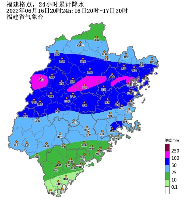 6月16日20時(shí)至17日20時(shí)福建累計(jì)降水。福建省氣象局供圖