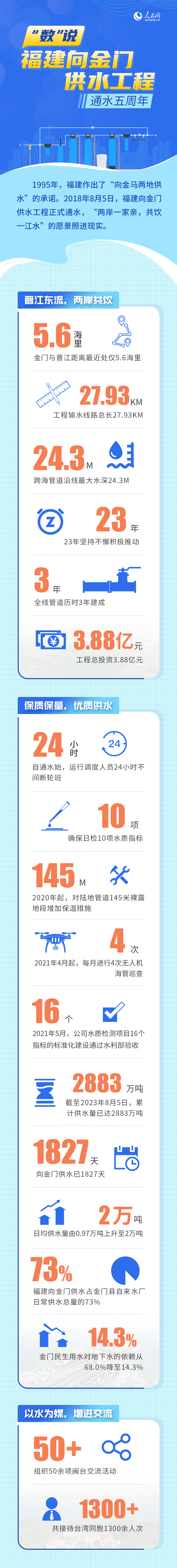 時(shí)值福建向金門(mén)供水工程五周年之際,讓我們用一組數(shù)字回顧一衣帶水的兩岸真情。