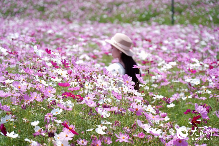 公園里盛開(kāi)的波斯菊。人民網(wǎng)記者 蘭志飛攝