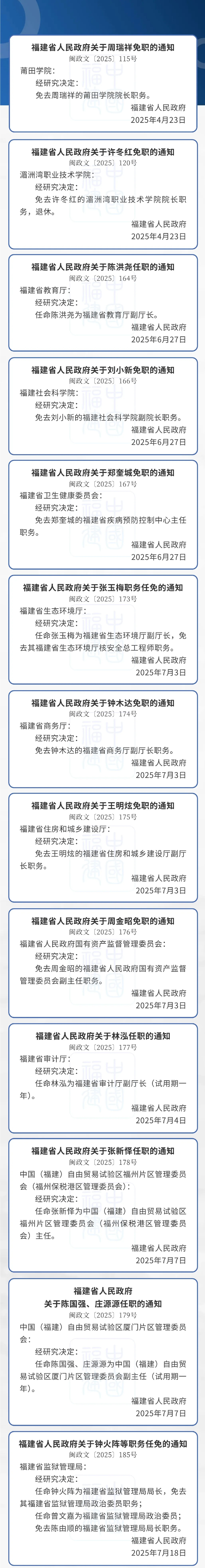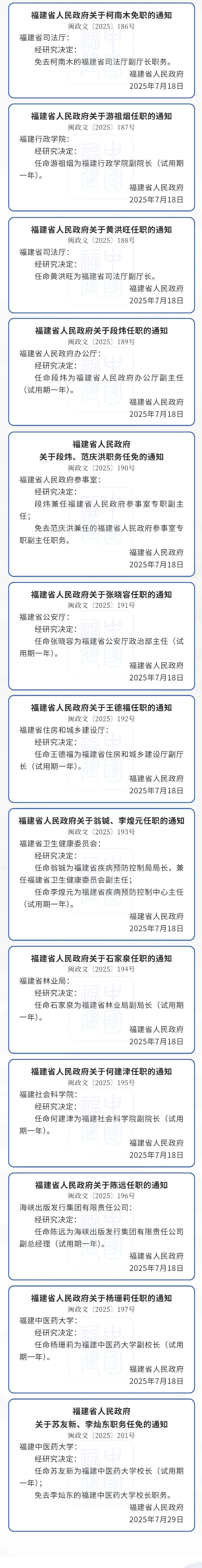 福建省政府任免多位廳級(jí)干部