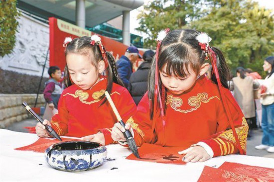 2025年廈門市“我們的節(jié)日·歡樂(lè)中國(guó)年”文化市集上,小朋友開心書寫自己的福年福運(yùn) 。(資料圖)